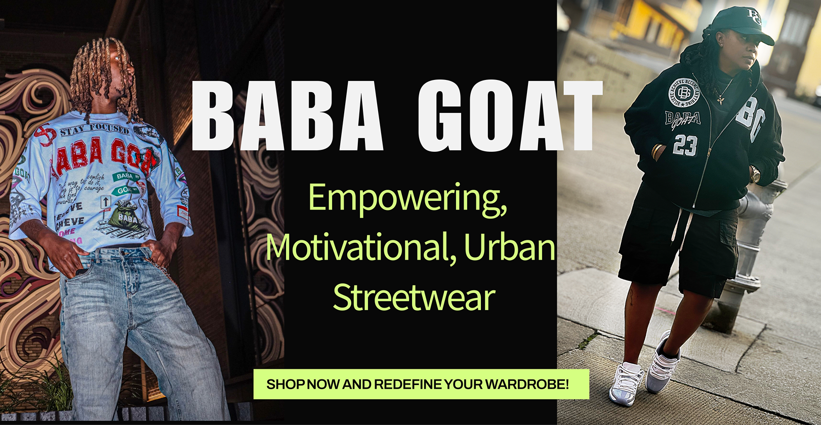 At BABA GOAT our vision is to empower individuals and families to express their unique identities through innovative and stylish streetwear and casual wear. We strive to create a community where fashion meets comfort, fostering connections that transcend trends. Our commitment to quality, inclusivity, and sustainability drives us to design pieces that not only look good but also feel good, inspiring confidence and creativity in every wearer. Together, we aim to redefine the fashion landscape, one outfit at a time.