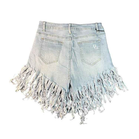 WMN HW Denim Color Fringe Shorts 0120 - Women's Denim Fringe Shorts